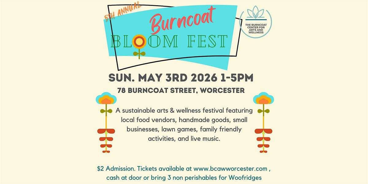Join us for our 5th annual Burncoat Bloomfest on Sunday, May 3rd from 1-5pm! This is always such a fun event featuring vendors selling handmade wares, food, live music, games and more. This is a pet friendly and family friendly event!