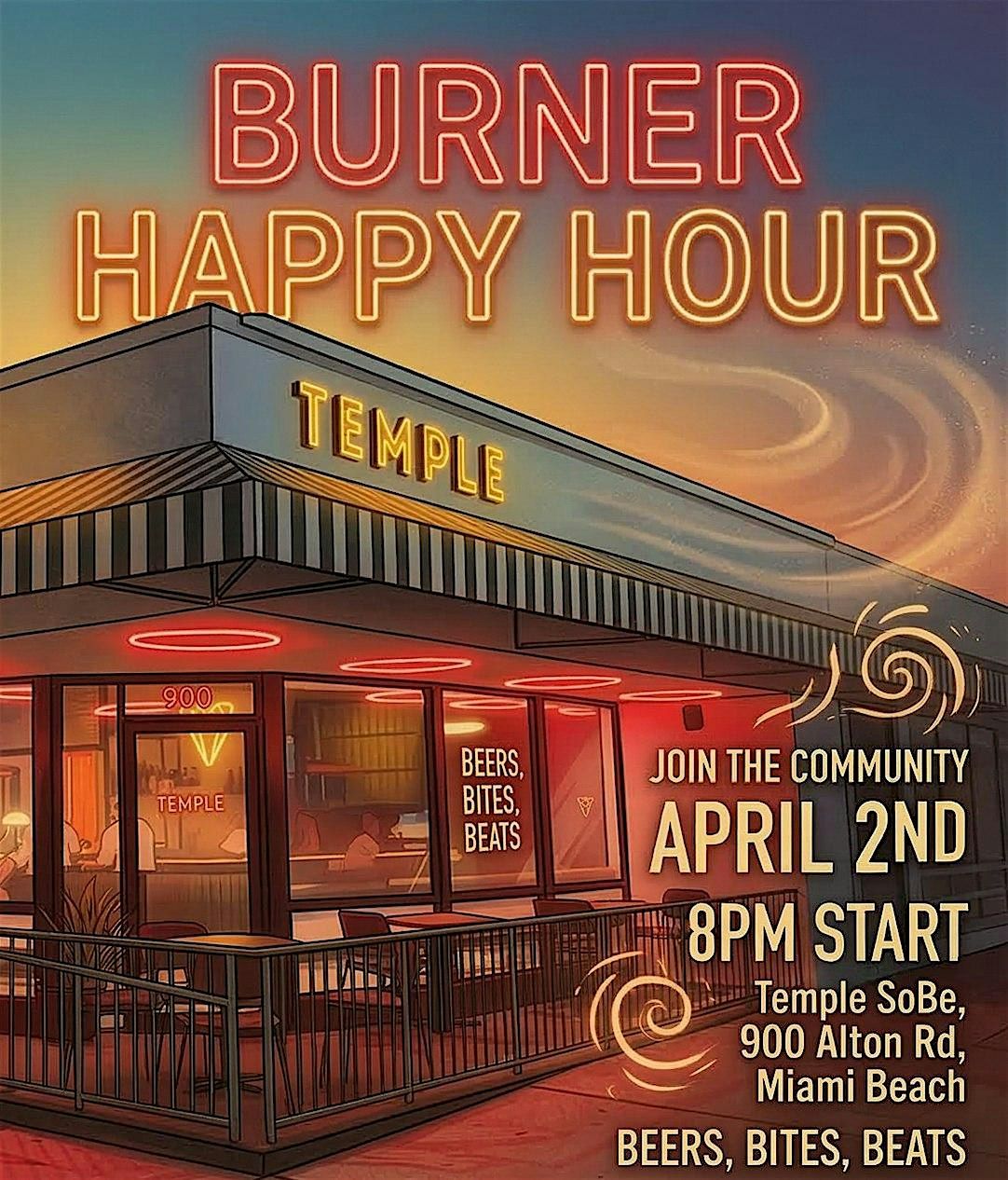 We’re bringing the playa energy to Alton Road for a Burner Happy Hour on April 2nd. Whether you’re a veteran of the Black Rock Desert or just curious about the community, come through for a night of beats, bites, and radical inclusion.