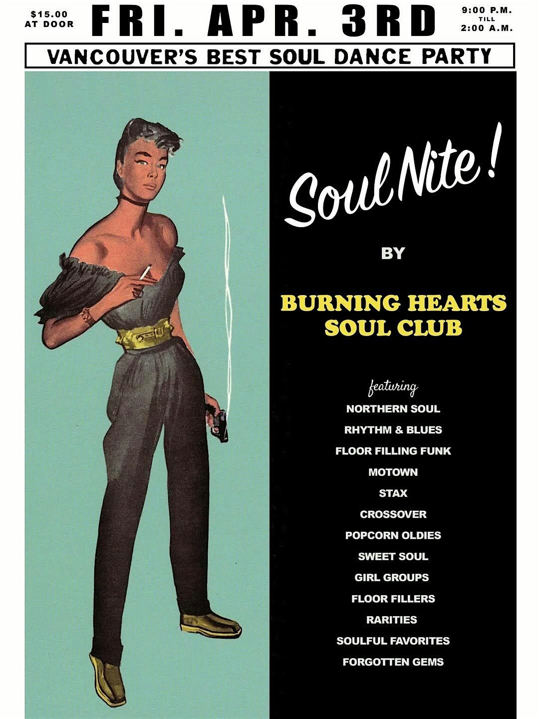 Burning Hearts Soul Club returns to The Cobalt Cabaret on Friday, April 3 for another night dedicated to deep cuts, dancefloor staples, and original vinyl selections.