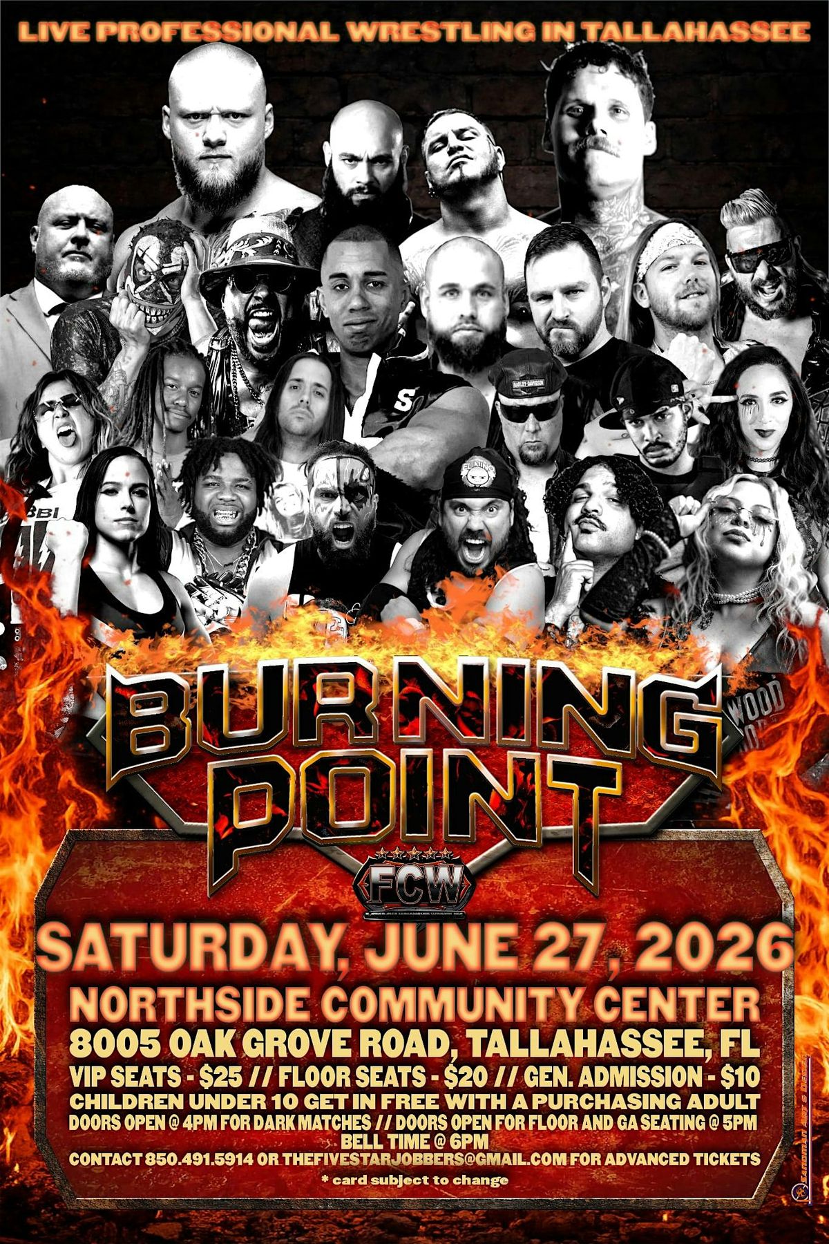 Join us as we kick off the summer with a bang at Burning Point! All your favorite FCW stars and some new faces all under one roof!