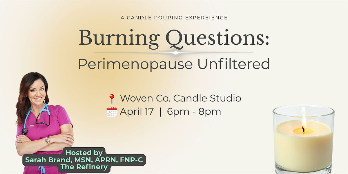 Join us for a warm, welcoming girls’ night at Woven Co Candle Studio designed for women navigating the confusing transition of perimenopause. No fluff, just honest answers to all your burning questions. Whether you're just starting to notice changes or knee-deep in the journey, this is your space to learn, share, and laugh through it all. Come hang out and get the unfiltered scoop!