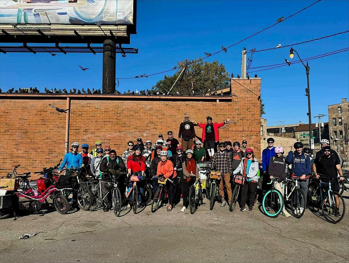 We meet at 2:30pm in the parking lot next to Plaza Tenochtitlán in Pilsen. We seperate into 3 groups with one heading west (toward the Humbolt Park area), one staying in and around the Loop, and one that heads north on the Lakefront Trail to the end in Edgewater. We ride our bikes around the city visiting encampments, shelters, and feeding hungry Chicagoans as we ride with burritos and other self care items.