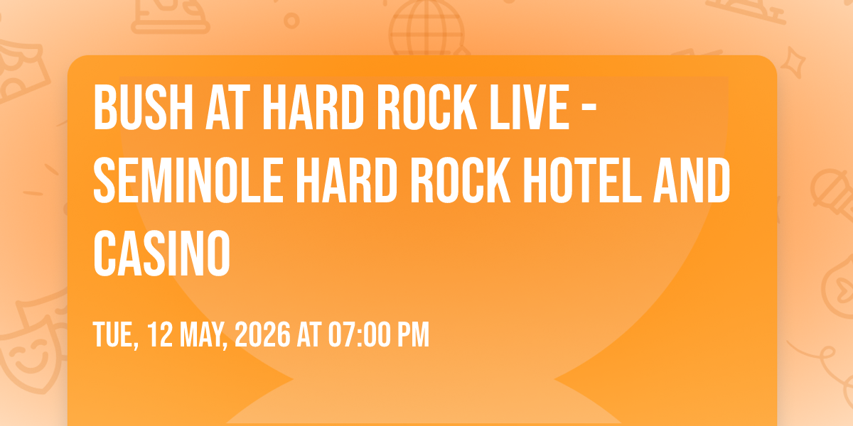 🌟 Journey into wonder at Bush at Hard Rock Live - Seminole Hard Rock Hotel and Casino, where extraordinary experiences await around every corner! 🏛️ Set against the backdrop of Hard Rock Live - Seminole Hard Rock Hotel and Casino in dynamic Hollywood, FL, this event promises to exceed all expectations. 📅 Join us on May 12th, 2026 at 07:00 PM for a celebration that combines innovation, entertainment, and community spirit in perfect harmony. ✨ There will be an atmosphere where memories are made and stories come alive, ensuring every guest experiences something truly remarkable. 🎊 This is more than just an event; it's a journey into the extraordinary!