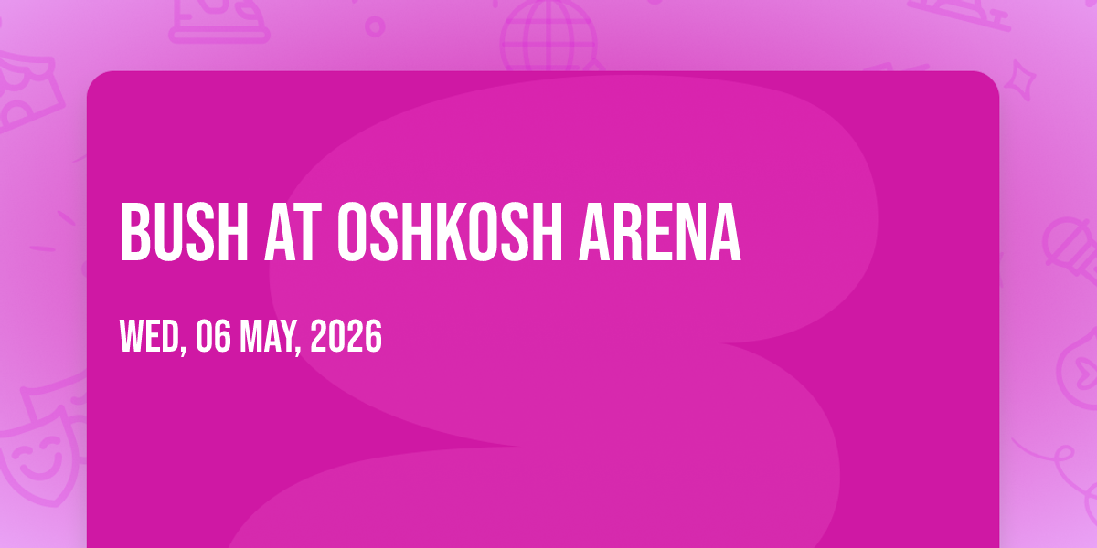 🌟 Be part of history at Bush at Oshkosh Arena, an extraordinary gathering that will captivate your imagination! 🏛️ The prestigious Oshkosh Arena in Oshkosh, WI sets the stage for an unforgettable experience on May 6th, 2026 at 07:00 PM. ✨ They are bringing together the finest elements of entertainment and innovation to create moments that will take your breath away. From the moment you arrive, you'll be immersed in an atmosphere of wonder and excitement. 🎯 This carefully planned event ensures every guest experiences something truly special. 🎊 Early booking is recommended for this must-attend event of the season!