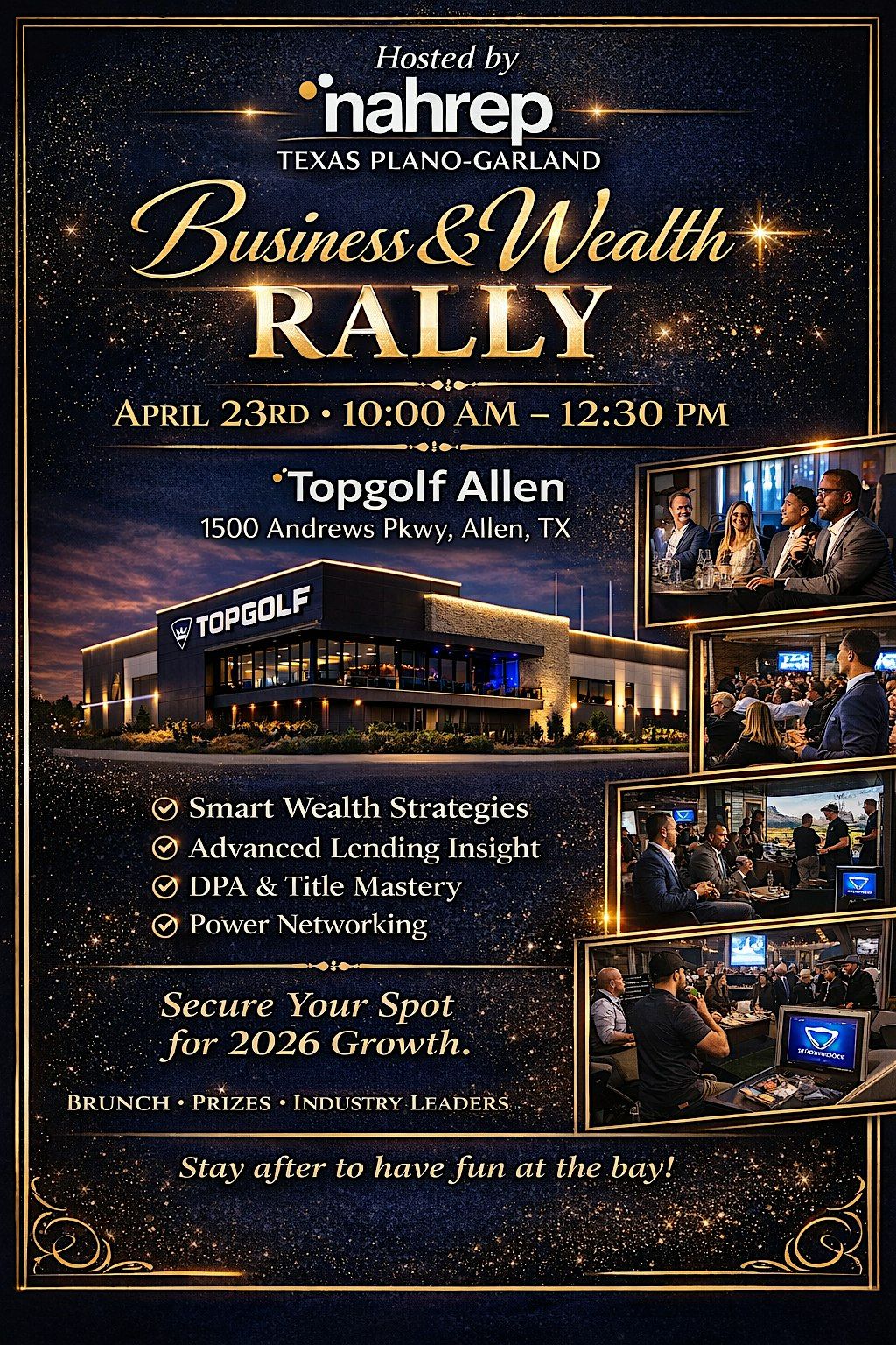 This rally focuses on helping professionals operate at a higher level — financially, strategically, and personally.Expect actionable takeaways, elevated networking, and meaningful conversations in a dynamic Topgolf setting.