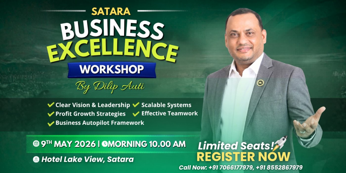 Join the Business Excellence Workshop by Dilip Auti — a powerful and practical session created specially for Entrepreneurs, Business Owners, SME & MSME founders, and Self-Employed Professionals who want to build a structured, scalable, and high-performance business.