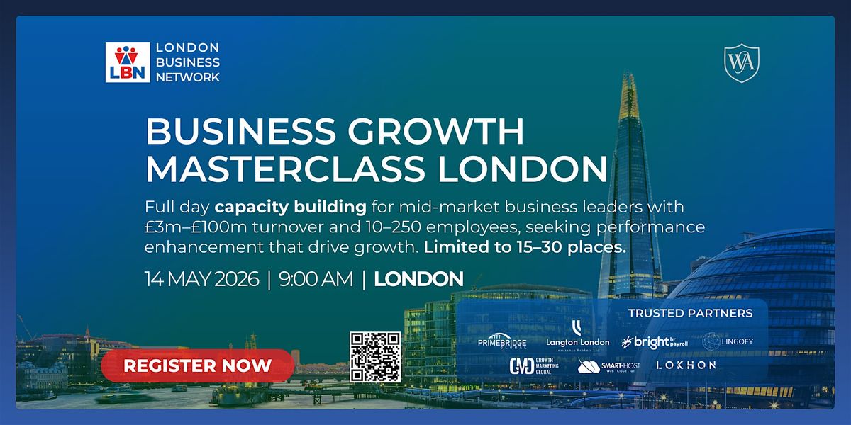 Business Growth Masterclass London by London Business Network, is a full-day masterclass delivered by a multidisciplinary team executive coaches, experts in leadership, performance, and growth in the UK and global markets, whilst connecting participants for new commercial and strategic opportunities.