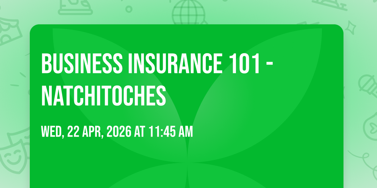 Join us for a Business Insurance 101 workshop with Reba Phelps of BOM Financial Services. Designed for both new and existing business owners, this session will walk through the essentials of protecting your business and planning for the unexpected. Free and open to the public. Light lunch will be provided.Sponsored by BOM Financial Services and NSU Office of Economic DevelopmentFor more information, please contact Jill Leo at [email protected] or 318.357.4069.