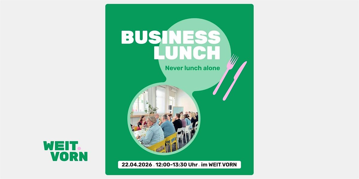 Never lunch alone – ein beliebter Workhack, wenn es darum geht, sich zu vernetzen und neue Impulse zu sammeln. Beim Business Lunch im WEIT.VORN hast du genau diese Gelegenheit: Nutze deine Mittagspause, um inspirierende Menschen aus den unterschiedlichsten Unternehmen und Institutionen kennenzulernen, dich über deine Themen auszutauschen und wertvolle Kontakte zu knüpfen.
