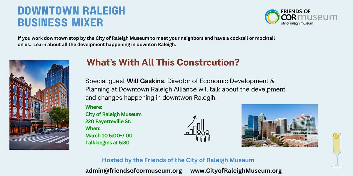 Join us at the Museum for Happy Hour. We will have special guest speaker, Will Gaskins, from DRA talking Downtown development & progress.About this Event