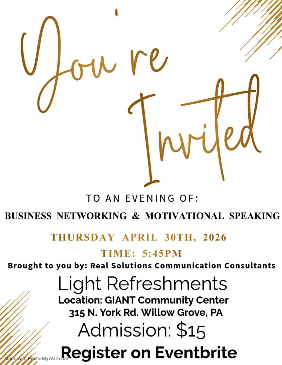 This is event is being brought to you by: Real Solutions Communications Consultants. If you are a small business owner or aspiring. This is the event for you. Bring a friend seating is limited.