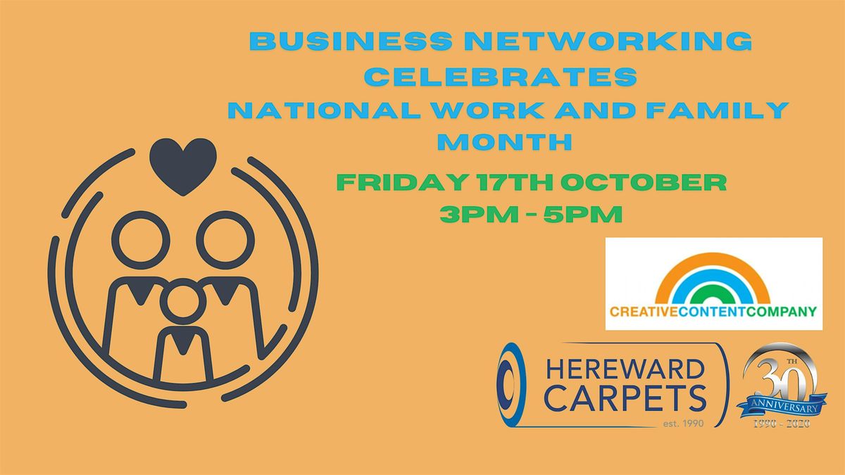 Did you know that October is National Work and Family Month? We are really excited to be celebrating this event with some free business networking. Mark and his team at Hereward Carpets and Flooring will be hosting our Business Networking Celebrates National Work and Family Month. This event will take place at Hereward Carpets and Flooring in Werrington on Friday 17th October.