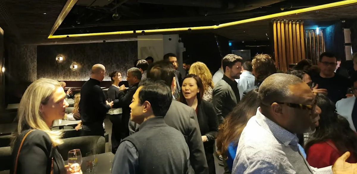 A warm, relaxed, and professional social mixer atmosphere from the moment you arrive