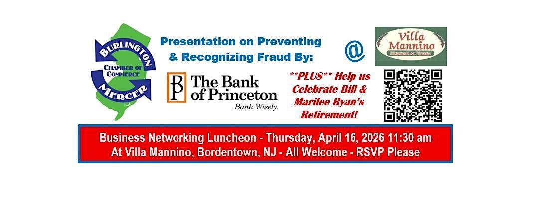 Our guest speakers will be experts from The Bank of Princeton's Fraud Department. They will be discussing ways to recognize and prevent fraud.