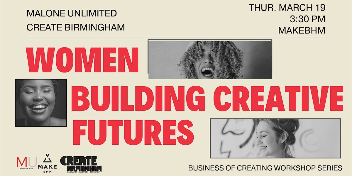 Join Create Birmingham, Malone Unlimited, and MAKEbhm for a special workshop and networking event geared towards Birmingham’s women-led creative community! Take part in a workshop led by Malone Unlimited, and learn how to fund your business for growth. Meet the Creative Entrepreneurship team at Create Birmingham and connect with our programs, and find out more about the incredible classes, and opportunities for office/ studio space available at MAKEbhm.