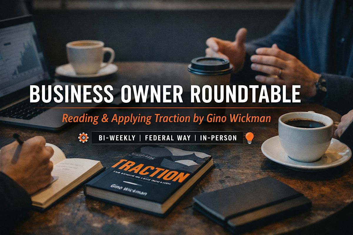 Join us for a bi-weekly, in-person Business Owner Roundtable where we read, discuss, and apply key concepts from Traction by Gino Wickman.