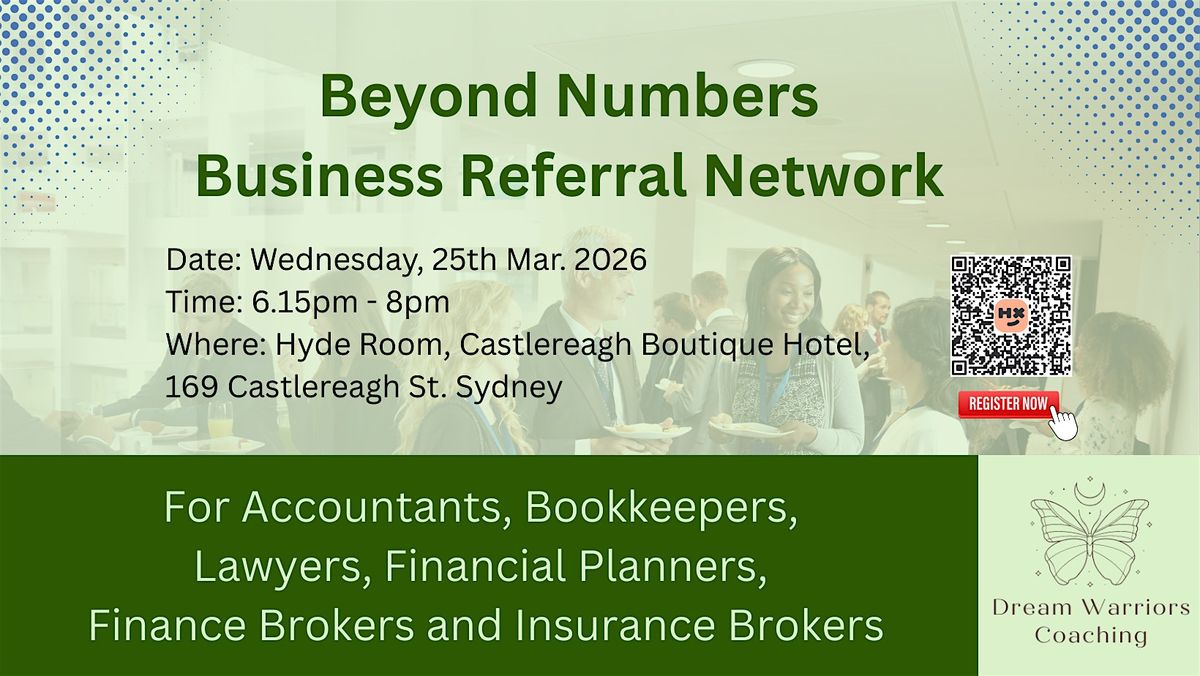 Beyond Numbers Business Referral Network for Accountants, Bookkeepers, Planners and Brokers is designed for business owners in the Accounting, Bookkeeping and Financial Services Industry to connect with likeminded finance professionals, build meaningful and authentic relationships in a positive and supportive environment.