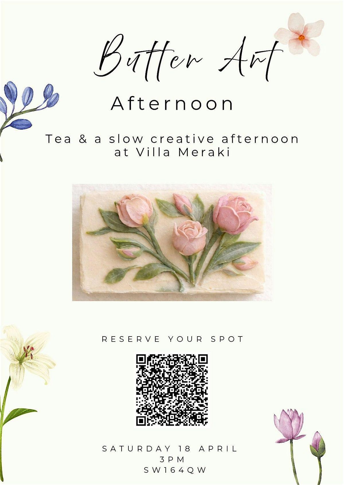 Join us for a slow and creative afternoon at Villa Meraki, where we gather around the table to unwind, create, and connect. In this intimate butter art workshop, you will decorate your own butter block into delicate floral designs, guided by a calm and relaxed atmosphere.