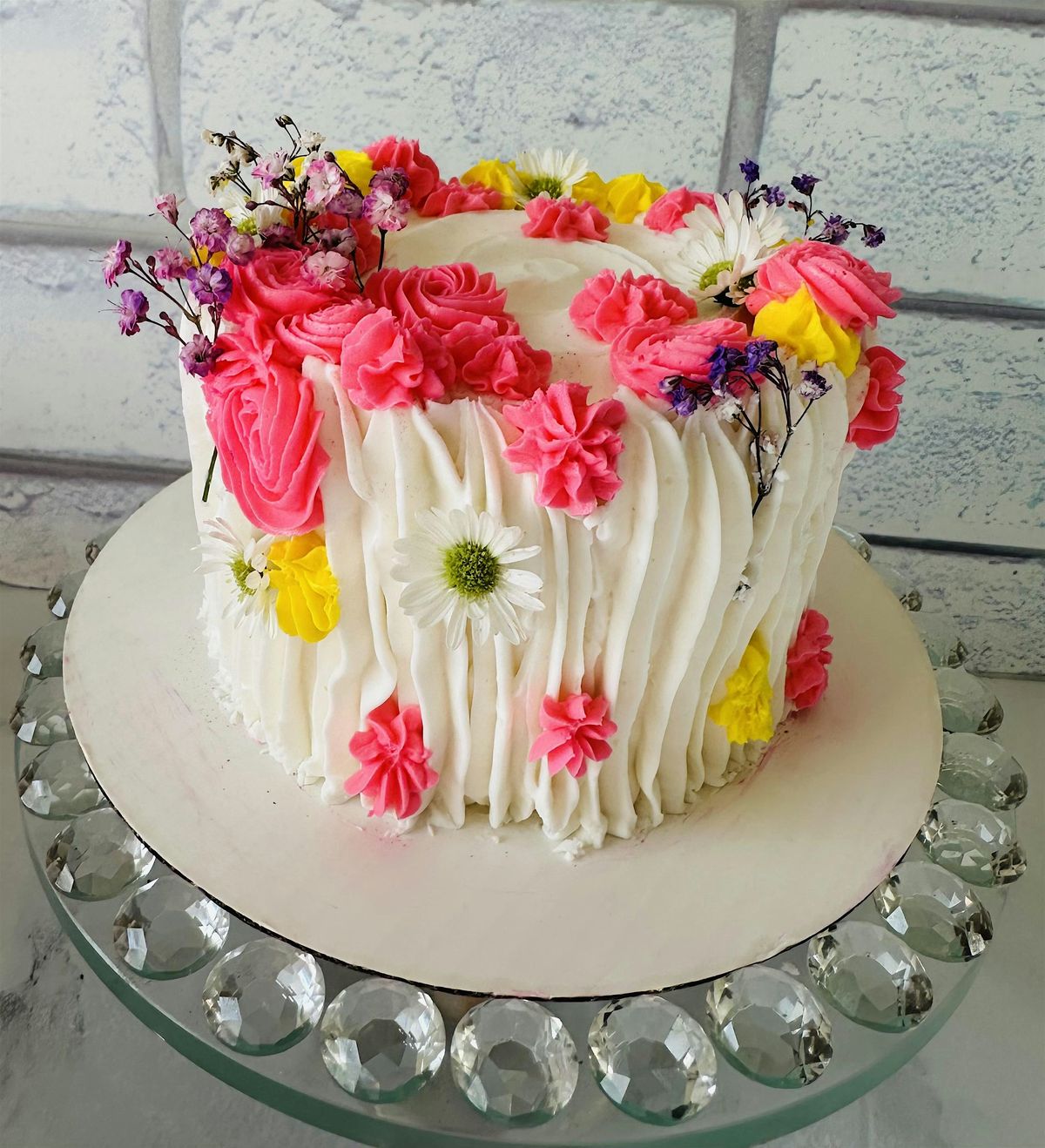 Join Celebrity Pastry Chef Dawn of Ravy Cakes LLC, students will learn essential cake decorating techniques including how to level cake layers, build and stack a mini cake, apply a smooth crumb coat, master buttercream piping techniques, and create textured buttercream finishes techniques. You’ll also learn how to apply beautiful faux florals to elevate your cake into an elegant centerpiece.