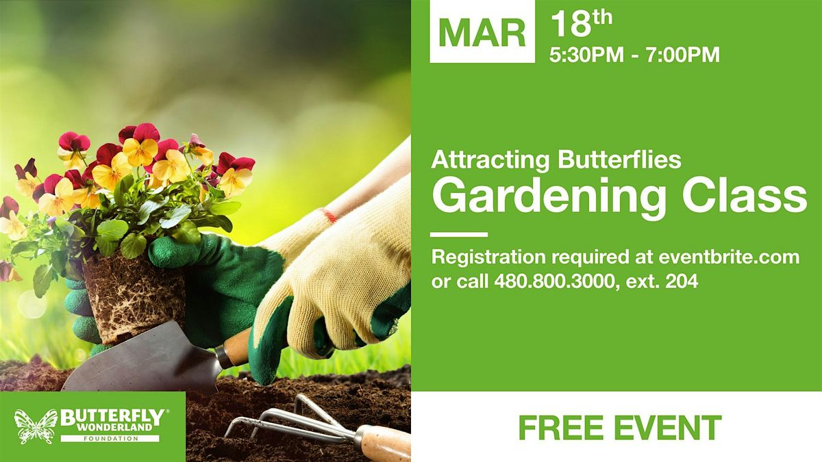 In conjunction with Butterfly Wonderland’s Spring Plant Sale (March 13-15), guests are invited to a special class presented by Master Gardener Adriane Hopkins. She will share how to build a butterfly garden that will attract gorgeous AZ butterflies. This class will help gardeners find out which host and nectar plants butterflies love! After class, get the first pick of the Civano Growers’ plants, sponsors of the Butterfly Wonderland Plant Sale. Plants range from $15-$30. The class is FREE. Registration is required at EventBrite.com. Free seeds.For more info, contact (480) 800-3000, ext. 204. Proceeds from the class/sale benefit the Butterfly Wonderland Foundation.