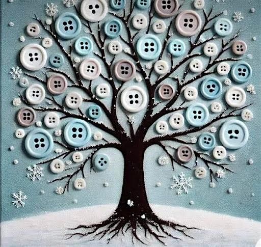 Add a splash of color and texture to your winter decor! Join us for a creative afternoon where we bridge the gap between traditional painting and repurposed art. You’ll start by painting a serene winter backdrop and the graceful silhouette of winter trees. Then, the real magic happens: you’ll "dress" your branches with a vibrant canopy of colorful, repurposed buttons.