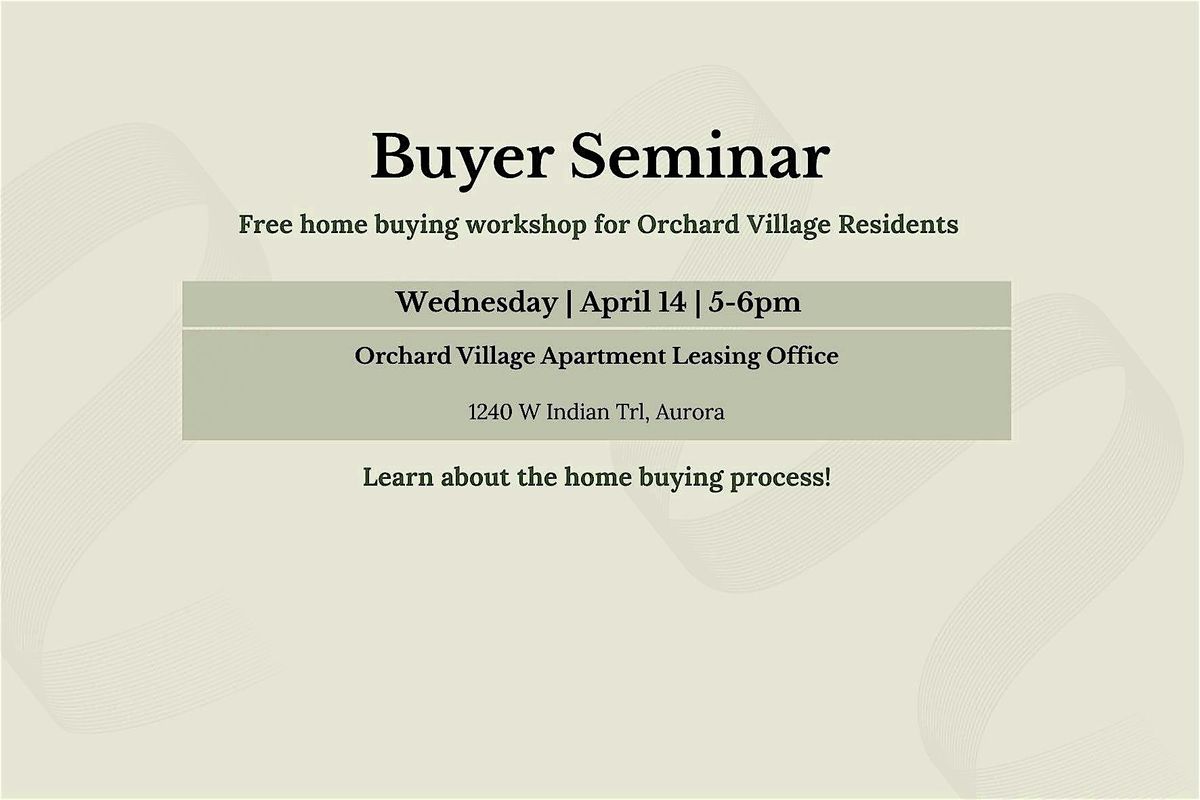 Join us at the Orchard Village Apartments leasing office to learn about the home buying process and hear from a local lender and Realtor.About this Event