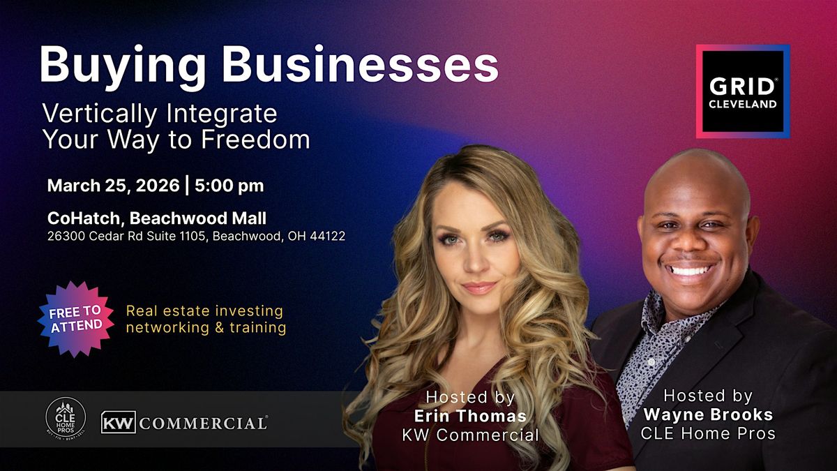 At this March GRID Cleveland event, hosted by Erin Thomas (KW Commercial) and Wayne Brooks (CLE Home Pros), we are exploring how to turn expenses into income. Weβll discuss why acquiring operating businesses might be the missing piece of your portfolio and how doing so can give you more control over your time and money.