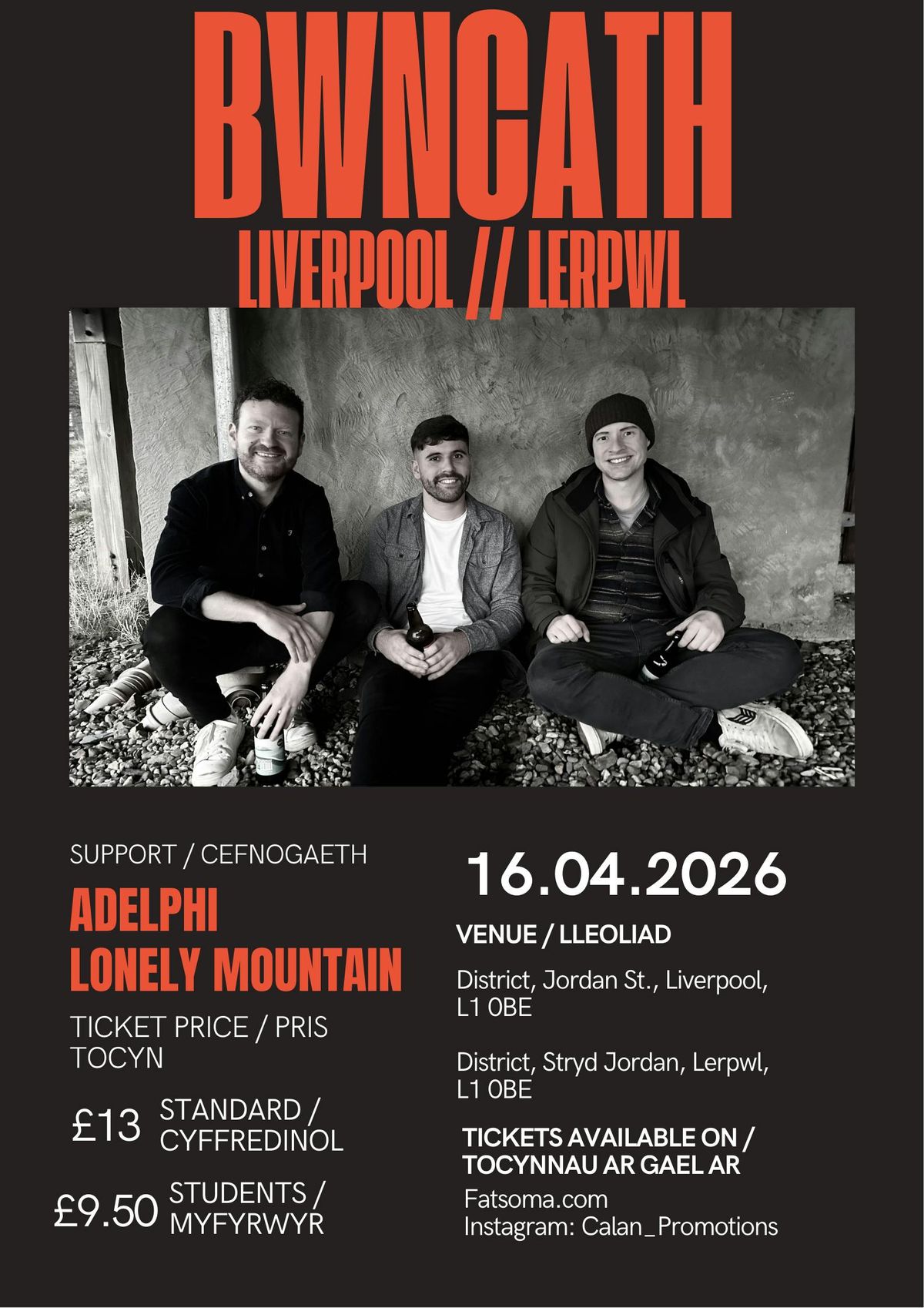 For the very first time, Bwncath, one of the most successful Welsh language artists of the last decade, bring their unique blend of folk and rock to LiverpoolAm y tro cyntaf erioed mae Bwncath, un o fanidau mwyaf llwyddianus Cymru dros y ddegawd diwethaf - yn dod a'u cymysgedd unigryw o gerddoriaeth roc a gwerin i Lerpwl.