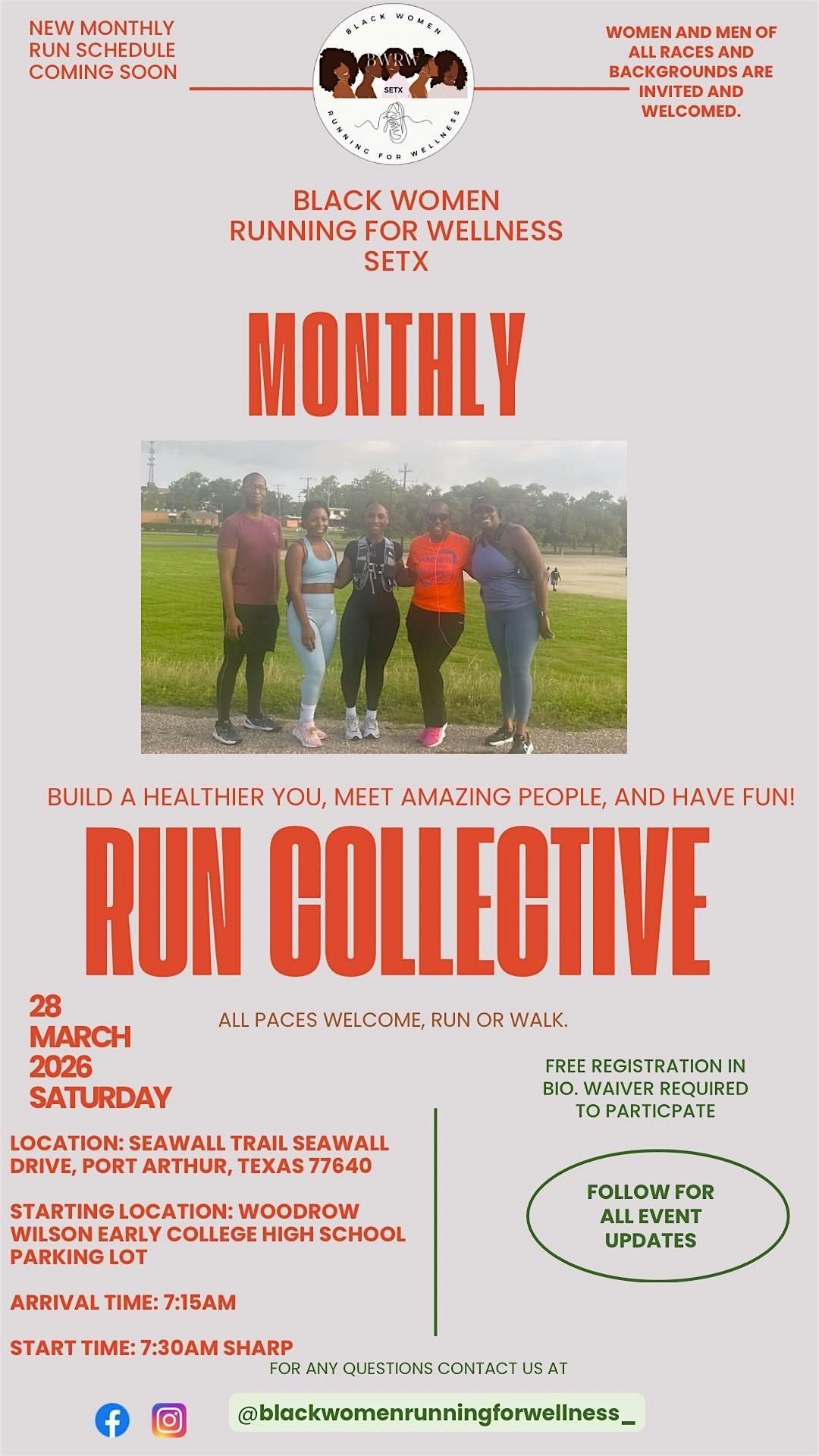 Info: Join us for the August Monthly Run with Black Women Running for Wellness (BWRW) on Saturday, March 28th, 2026 at the Seawall Trail in Port Arthur, TX! This FREE, pace-inclusive event welcomes all paces and fitness levels—whether you walk, jog, or run, you belong here.