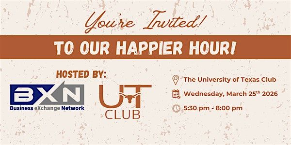 Join us at The University of Texas Club on Wednesday, March 25th for a social happy hour! Build Strategic Relationships, Expand Partnership and enjoy great drinks, light bites and a unique atmosphere all inside Darrel K. Royal - Texas Memorial Stadium.