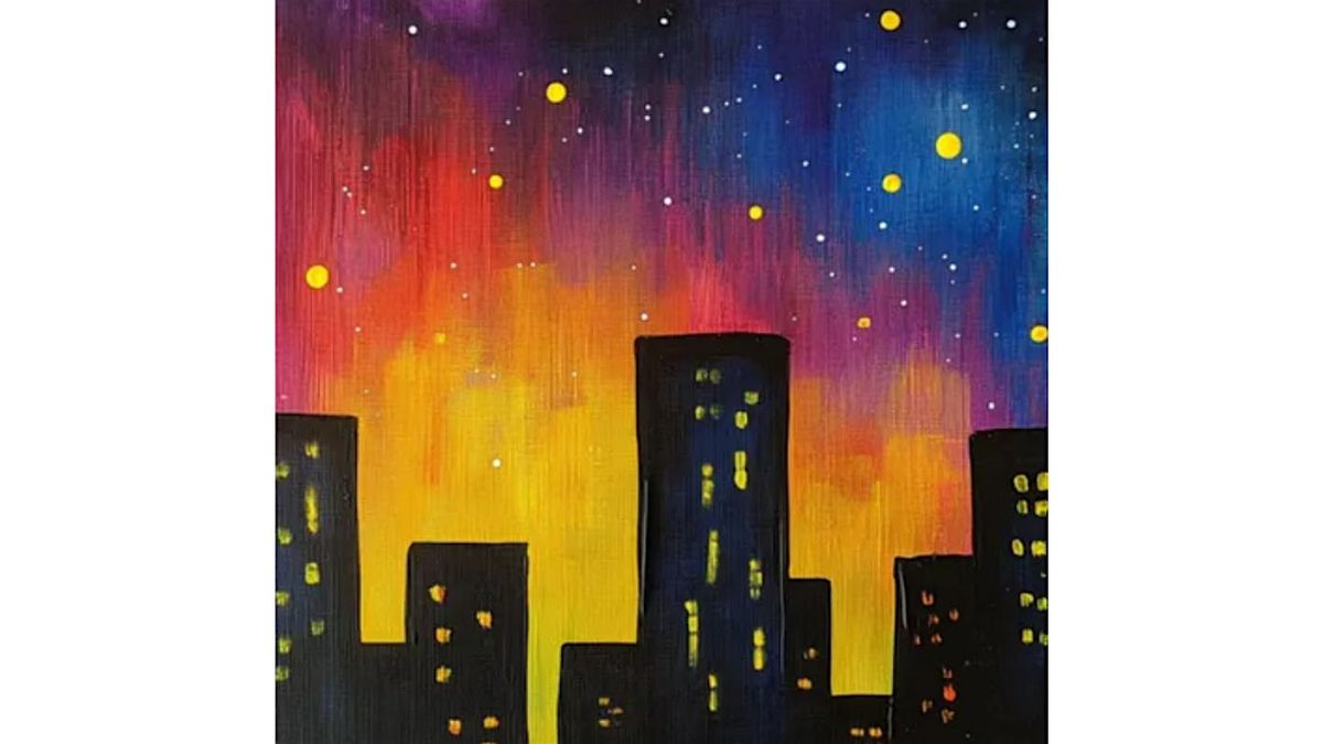 Paint a modern city skyline set against a stunning ombre sky—sip, relax, and create your own urban masterpiece for 2 hours!