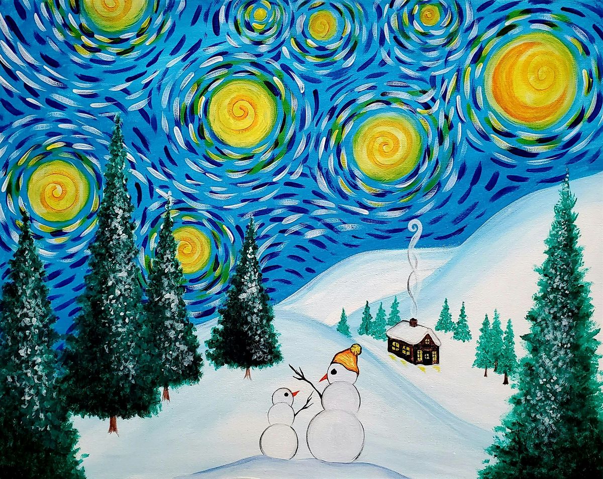 (We will be painting the picture shown above, however you are welcomed to switch up colors and get as creative as you like)