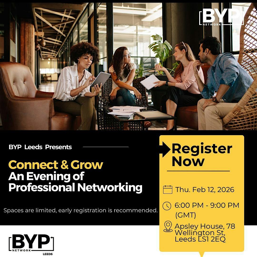 BYP Leeds: Connect & Grow is a relaxed, in-person professional networking evening designed to bring together ambitious students, early-career professionals, founders, and corporate leaders in a welcoming and purposeful space.