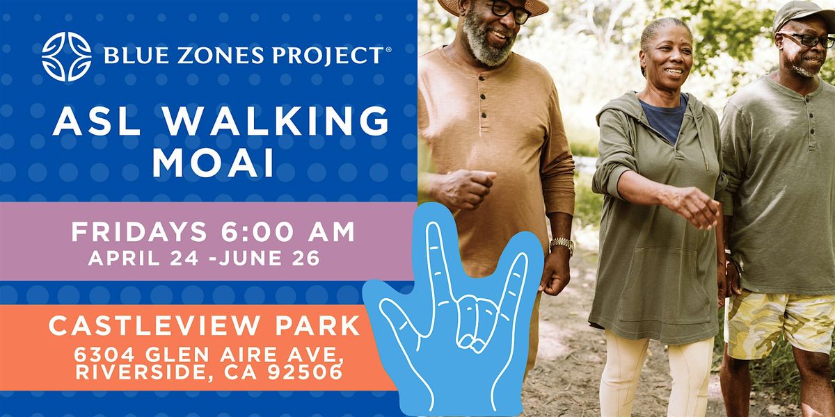 Join us for our Blue Zones Project American Sign Language (ASL)Walking Moai—a unique experience rooted in connection, movement, and communication. Inspired by the Okinawan tradition of moai, this gathering is more than just a walk. It’s a chance to build meaningful relationships, learn and practice American Sign Language (ASL), and support your well-being in a fun, engaging way.