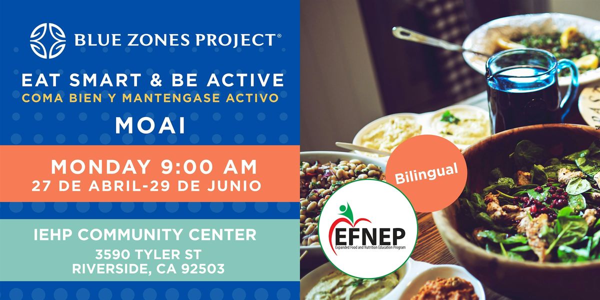 ¡Únase a nuestro grupo Coma Bien y Mantengase Activo Moai at the IEHP Community! Aprenda cómo incorporar una alimentación saludable y una vida activa en la vida de su familia. Esta serie bilingüe incluirá lecciones y demostraciones de preparación de alimentos saludables. Se ofrece sin costo alguno para personas de bajos recursos.