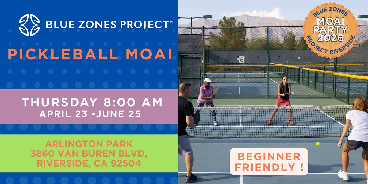 Join us for our Blue Zones Project Pickleball Moai hosted by Riverside Pickleball, a fun, social experience rooted in connection, movement, and friendly competition. Inspired by the Okinawan tradition of moai, this is more than just a game. It’s a chance to build lasting friendships, stay active, and enjoy the energy of playing together.