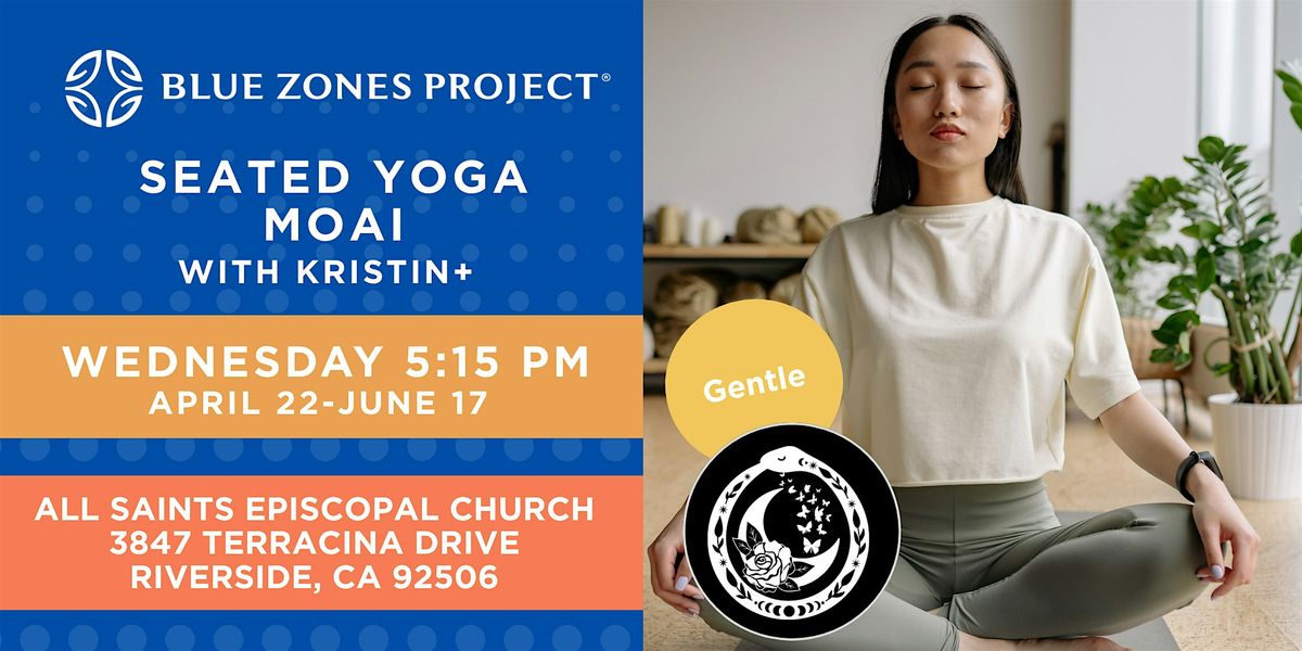 Join Blue Zones Project Riverside and Seated Yoga Moai with Kristin, a 10-week experience designed to make yoga accessible to absolutely everyone. Whether you're managing mobility challenges, recovering from an injury, or simply prefer a gentler approach, this practice is built around you.
