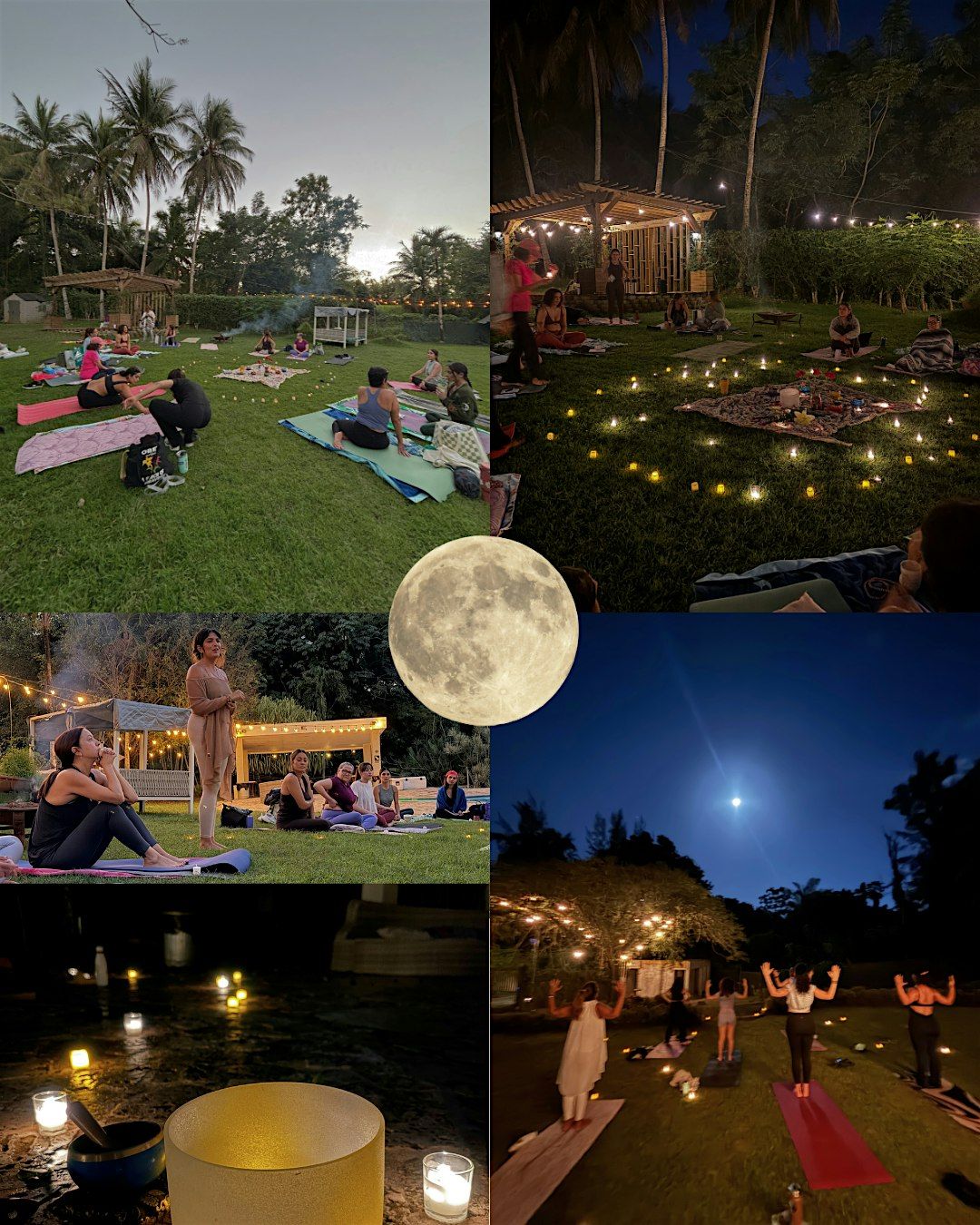 Compartiremos yoga, círculo de reflexión, ceremonia de cacao y un baño de sonido todo bajo la luna y estrellas. No necesitas experiencia para participar!