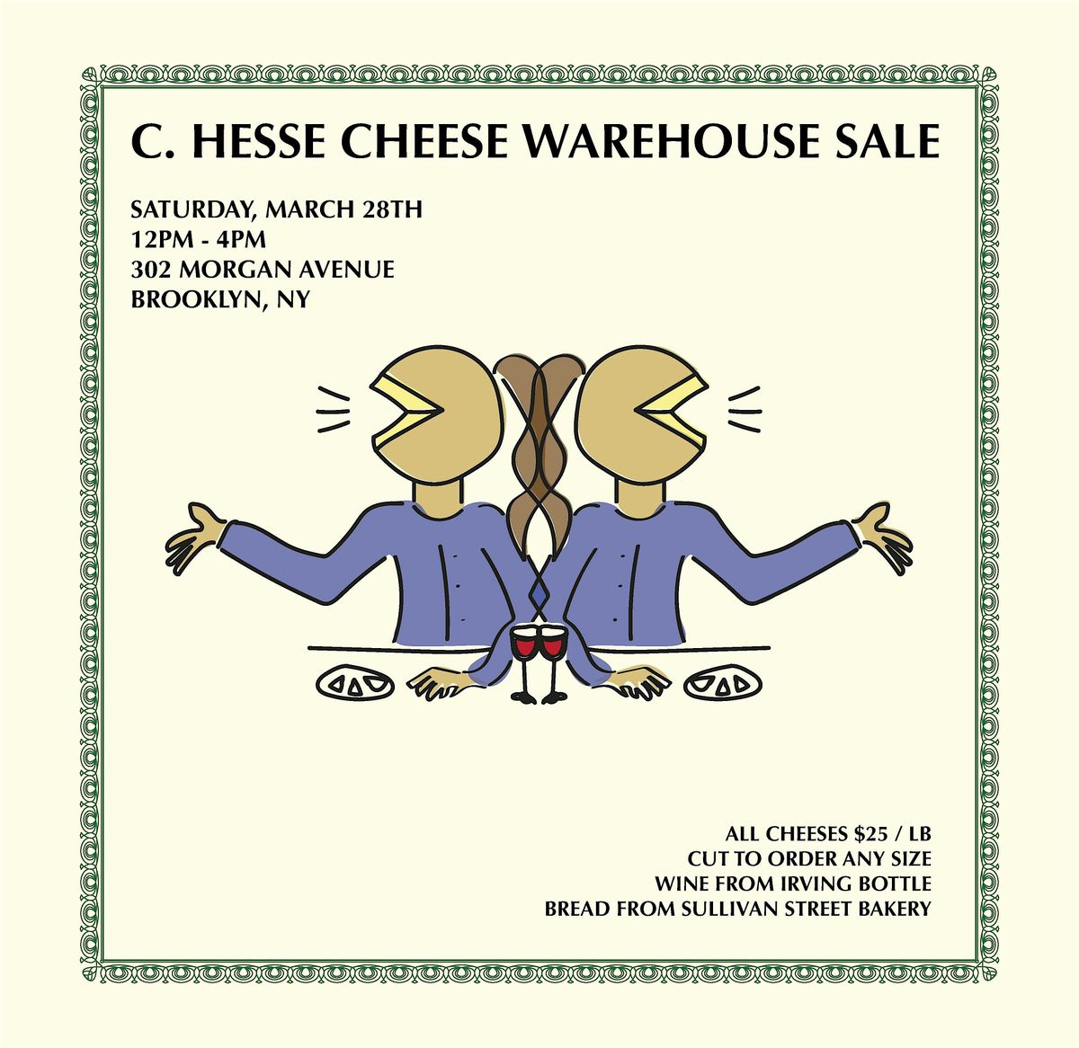 Once a month, we transform our East Williamsburg warehouse into a makeshift cheese shop, allowing anyone to come in, taste through the selection and purchase cheese to take home. We price everything to sell because, as Caroline says, “you get a discount when you come here and look me in the face”. We also provide wine from our friends at Irving Bottle to pair with your cheese tastes and encourage you to stay and chop it up with like-minded cheese fans. Plus, Caroline’s parents usually attend and they’re a hoot.
