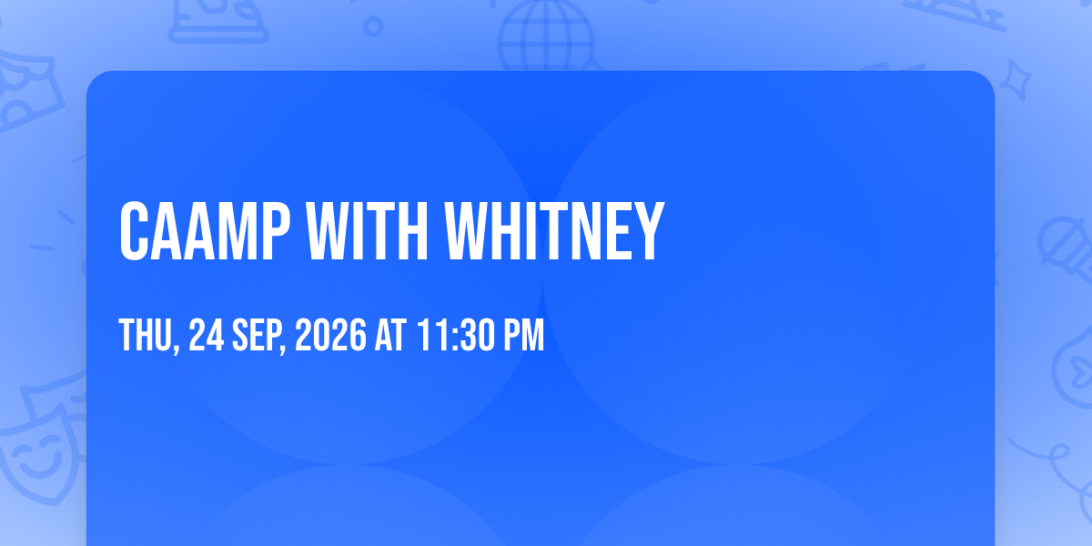 π Location: 42.6784, -83.2101π Welcome to CAAMP with Whitney, where the impossible becomes possible and dreams take flight! ποΈ Join us at Meadow Brook Amphitheatre in the heart of Rochester Hills, MI for an event that will redefine your expectations. π On September 24th, 2026 at 11:30 PM, witness the transformation of space and time into something truly magical. β¨ It's a curated experience combining the best of innovation, entertainment, and community spirit, creating moments that will be remembered for years to come. Whether you're a first-time visitor or a seasoned enthusiast, prepare to be amazed. π Book now to ensure your place in this unforgettable experience!