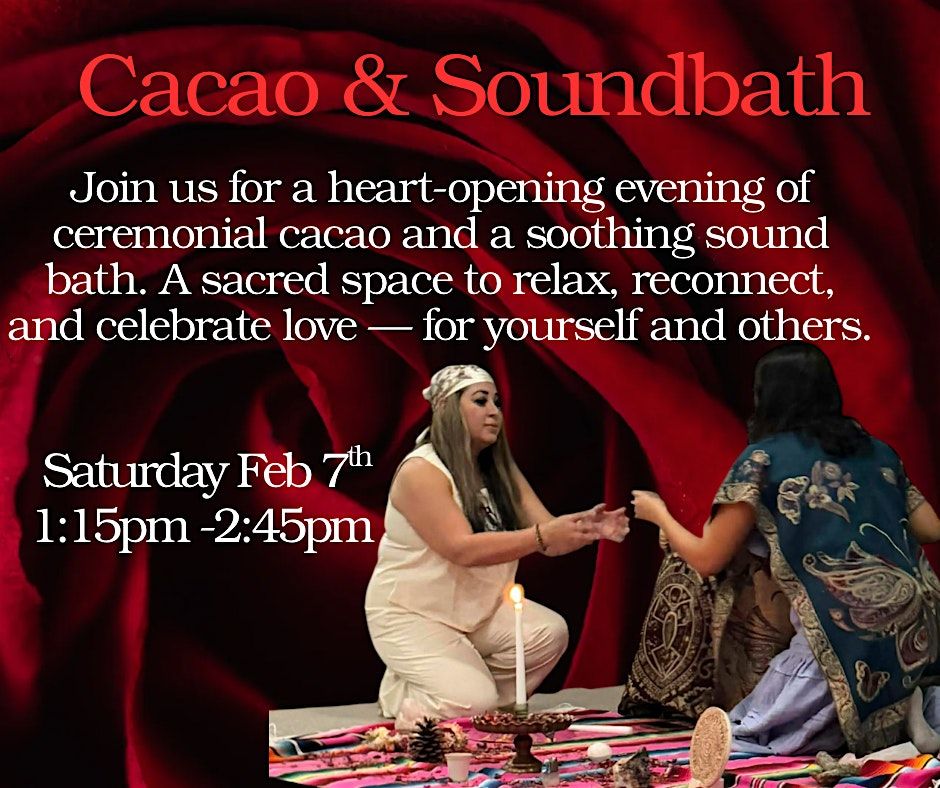 Join us in person for an unforgettable experience blending the rich flavors of cacao with the relaxing vibes of a soundbath. Let the soothing sounds wash over you while enjoying the deep, warm tastes of cacao. Perfect for those wanting to unwind, recharge, and connect with good energy. Bring your open mind & comfy clothes – it's gonna be a chill, soulful journey!