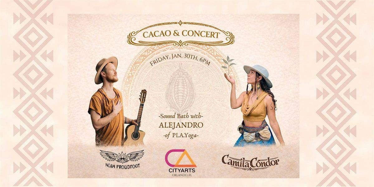 An evening of Cacao, music, and sound with Noah Proudfoot, Camila Cóndor, and Alejandro of Pla.Yoga.