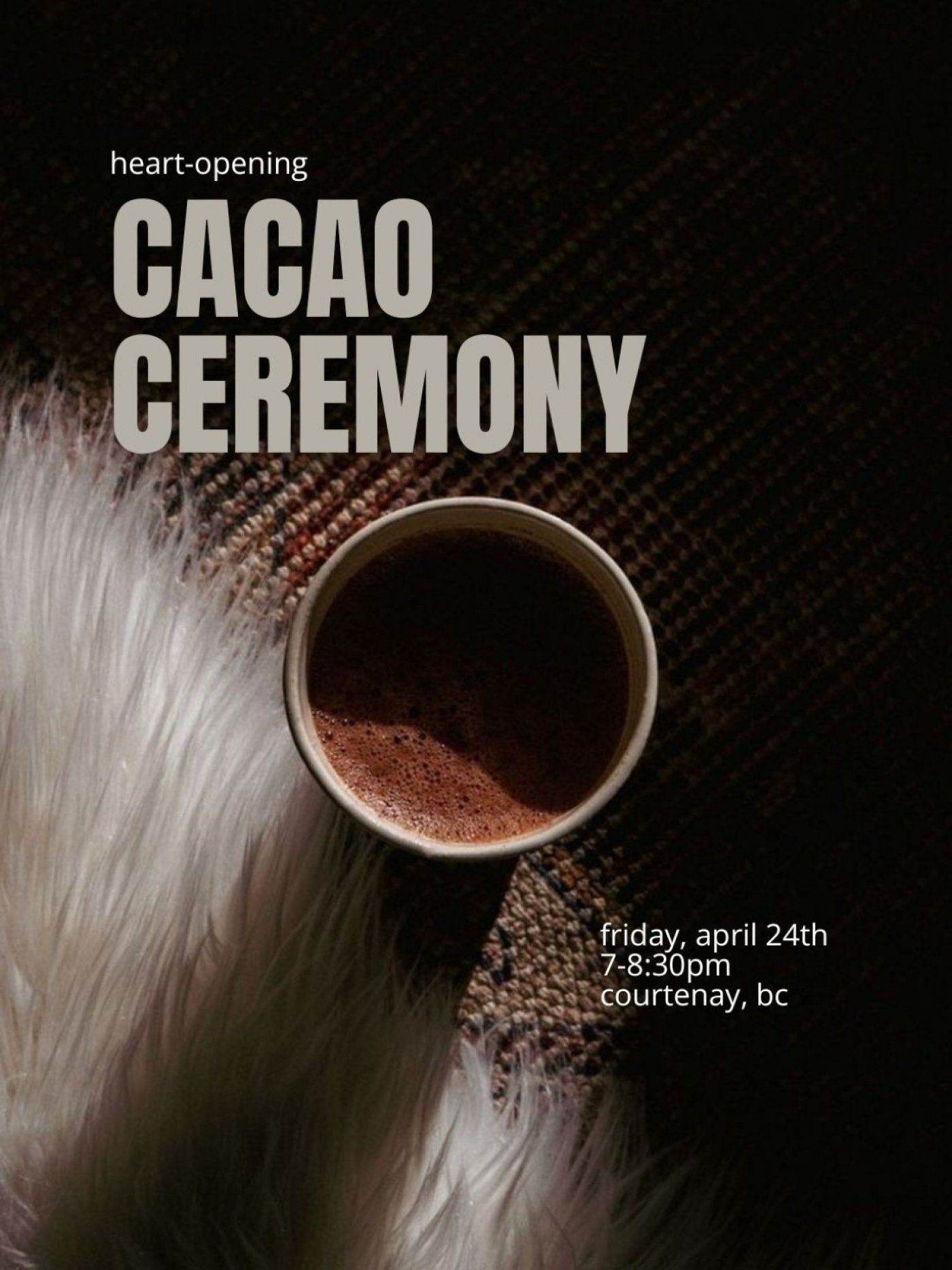 Join us for an intimate evening of connection, reflection, and heart-opening medicine as we gather in ceremony with cacao.
