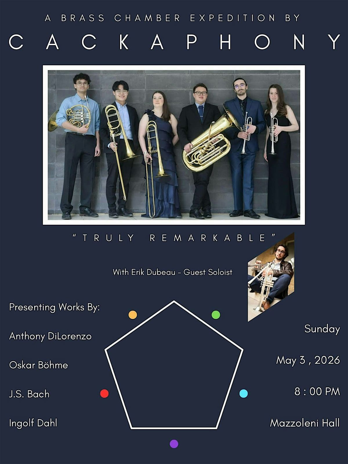 Join us for a great night of amazing brass chamber music classics, including works by Dahl, DiLorenzo and Bach! We hope to see you there βΊοΈAbout this Event
