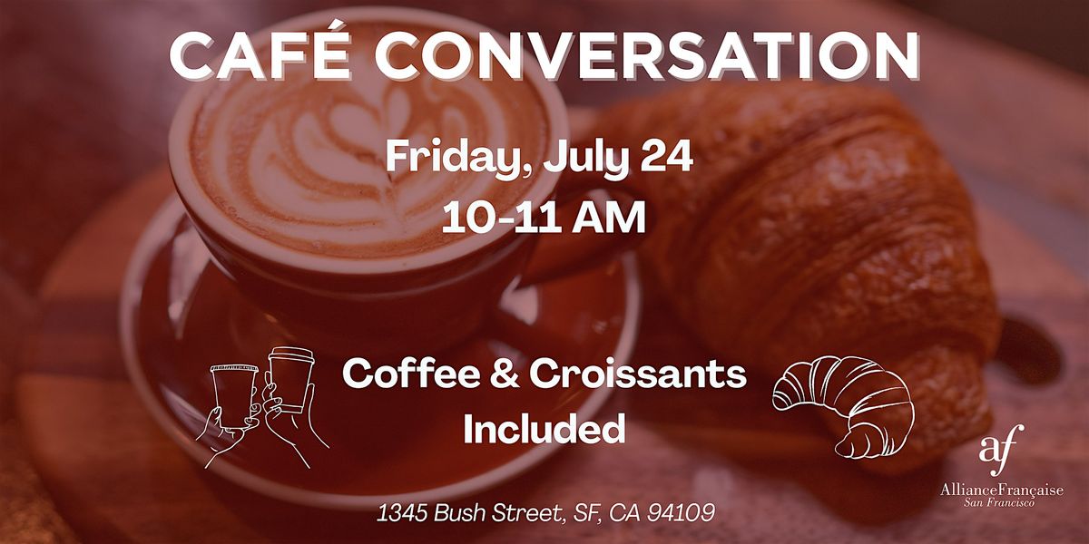 Every other Friday from 10:00am to 11:00am, let's meet in-person at the Alliance Française, to chat about a specific theme in French while sharing a cup of coffee or tea and a croissant.