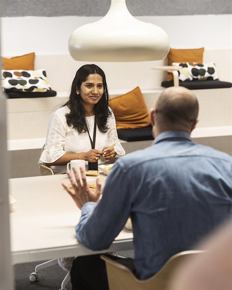 Café with Members is a networking event that provides members the opportunity to introduce and showcase their business, products, or services to fellow active members through a 30-second elevator pitch. These events typically take place in the morning and include a light working breakfast provided by the host.
