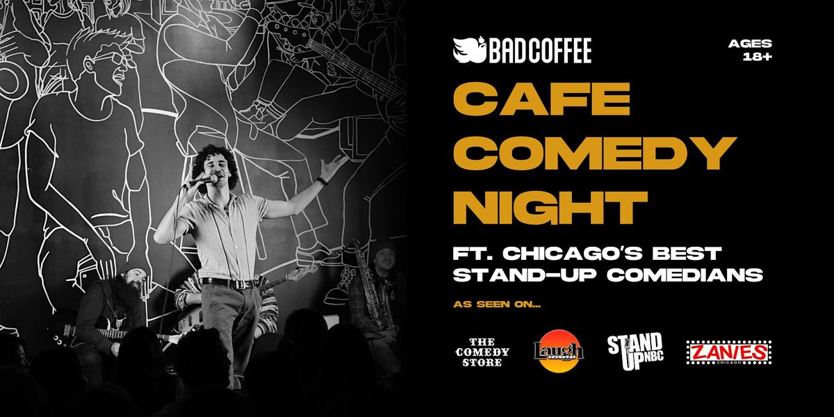 Bad Coffee presents Cafe Comedy Night! Enjoy 90 minutes of laughs with Chicago's top comedians from Laugh Factory, Zanies, NBC, HBO & more. The show is aslo accomplained by a live band. BYOB & full café bar available. Don't miss this cozy night of comedy!