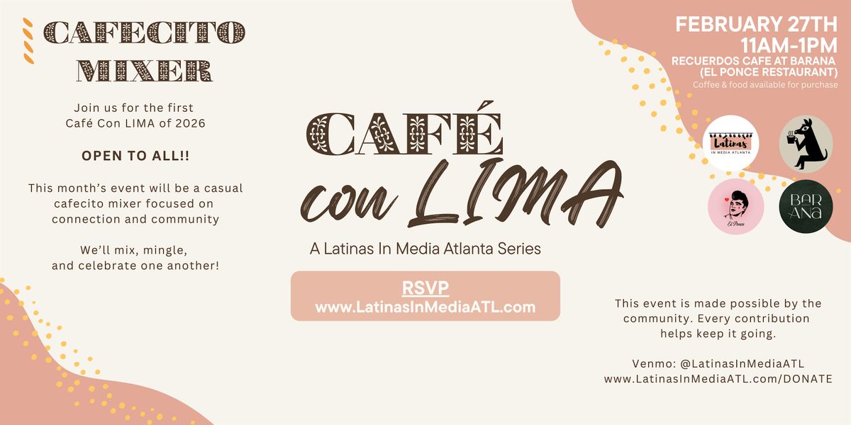 Café Con LIMA is our monthly cafecito mixer hosted by Latinas in Media Atlanta, an in-person gathering for filmmakers, industry professionals, creatives, and friends of la comunidad to come together in a space that feels both welcoming and intentional. This isn’t about formalities; it’s about genuine connection, shared experiences, and strengthening the creative community that surrounds us.
