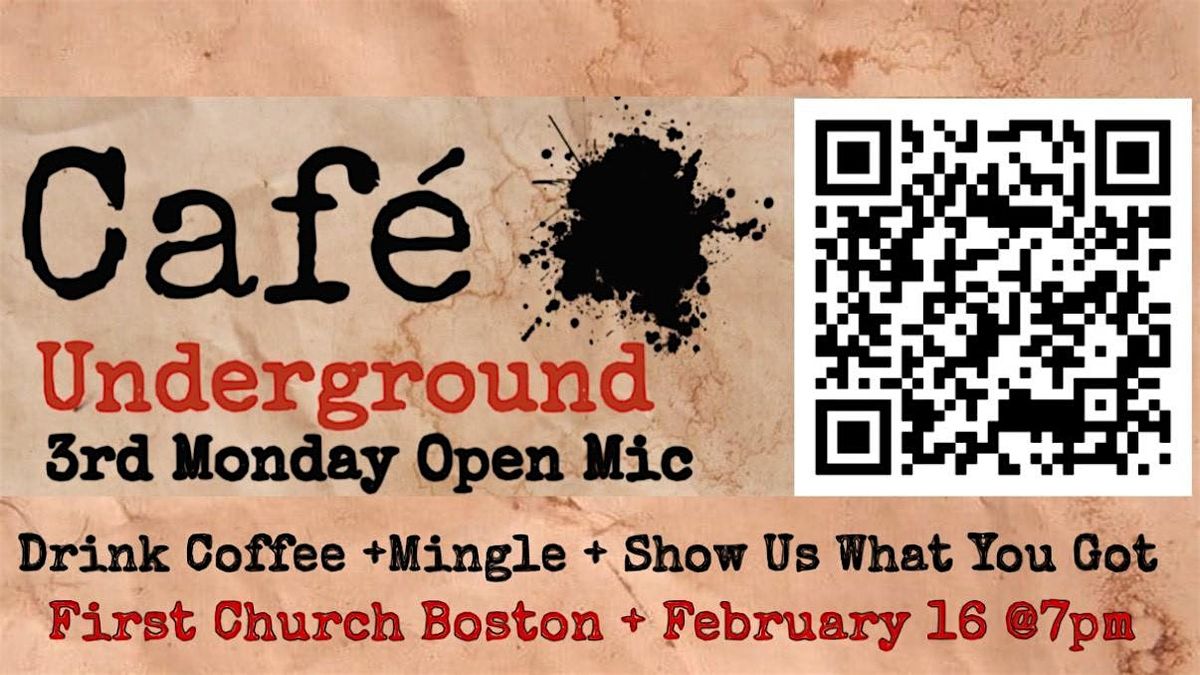 Cafe Underground is a pop up, open mic community event that is held on the 3rd Monday of the Month at 7pm.