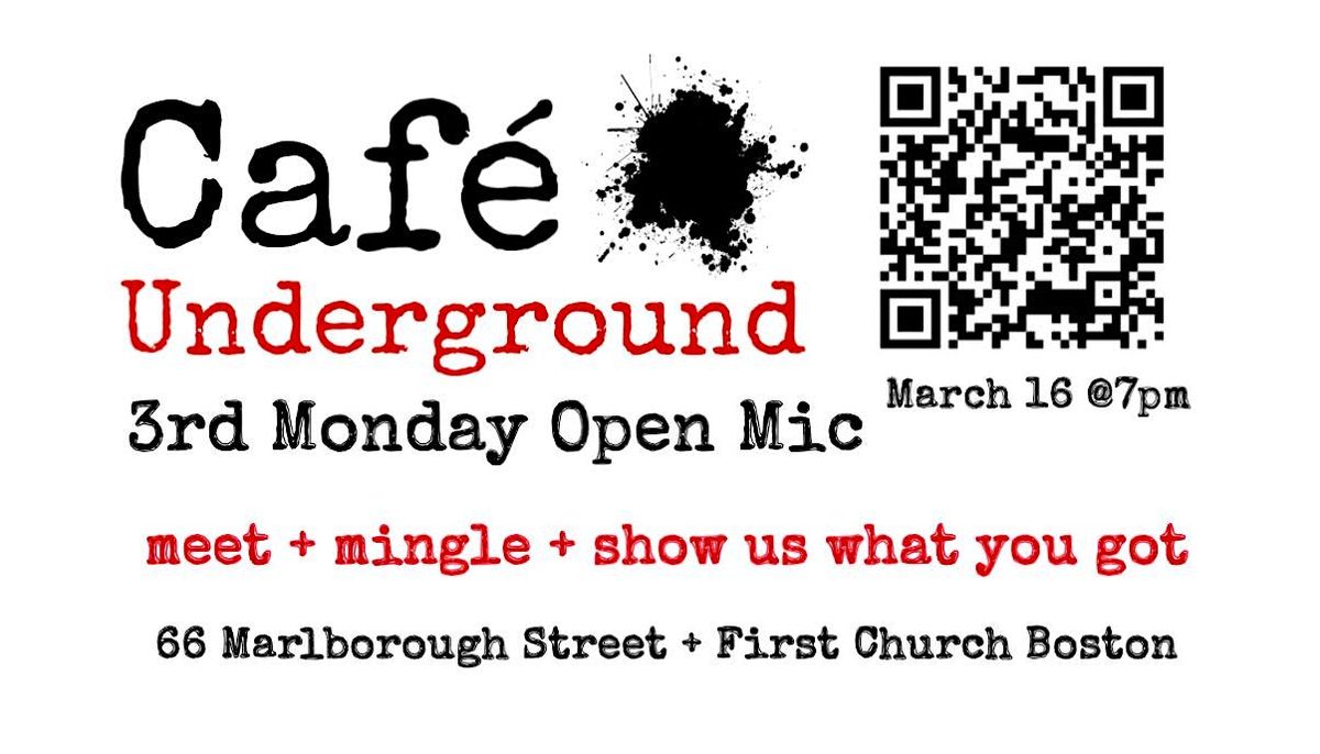 Cafe Underground is a pop up, open mic community event that is held on the 3rd Monday of the Month at 7pm.